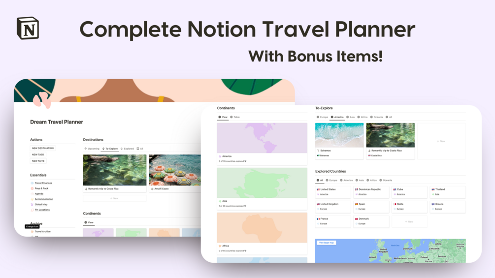 Notion Complete Travel Planner With Bonus Items!